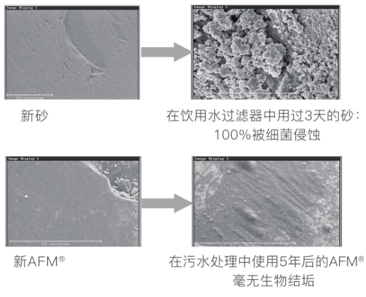 對大部分“水處理”系統(tǒng)而言,濾床是微生物滋生與繁殖的主要場所,因此解決濾床的微生物孳生與繁殖,是本系統(tǒng)的重要組成部分——AFM,作為一個蘇格蘭進(jìn)口產(chǎn)品,就是破解這一難題的環(huán)保選擇:用它取代容易滋生細(xì)菌的石英砂,可利用表面自消毒能力、讓細(xì)菌失去賴以生存的場所與食物,從而大大減少了整個水處理系統(tǒng)的微生物、減少了對消毒劑的依賴。