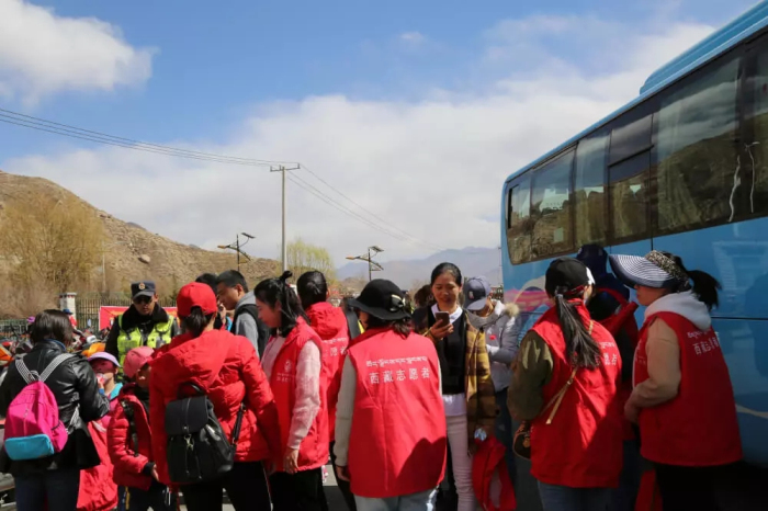 下午三點半,參加活動的人員準(zhǔn)時在婦產(chǎn)兒童分院辦公區(qū)樓下集合,并坐上開往色拉寺的大巴。在車上,阜康天使基金會的工作人員為大家發(fā)放志愿者馬甲以及水和食物,同時提醒大家撿拾垃圾和爬山時的注意事項。有人提議進(jìn)行才藝表演,于是一位同事的女兒用稚嫩的童聲唱了一首《喵喵喵》,小姑娘歌聲優(yōu)美、活潑可愛,同事們一路歡聲笑語,不知不覺中就到了位于拉薩市北郊的色拉寺。