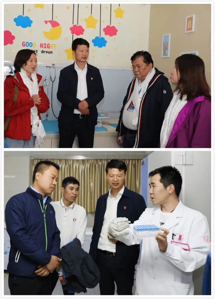 義診期間,中共中央統(tǒng)戰(zhàn)部七局處長(zhǎng)郭鵬與"同心共鑄中國(guó)心”駐西藏秘書長(zhǎng)趙士磊來到了阜康婦產(chǎn)兒童醫(yī)院詳細(xì)查看了正在井然有序進(jìn)行的義診現(xiàn)場(chǎng),在王斌董事長(zhǎng)陪同下參觀阜康婦產(chǎn)兒童醫(yī)院院區(qū),聽取并查看了我院人類輔助生殖醫(yī)學(xué)中心等特色科室的開展情況。
