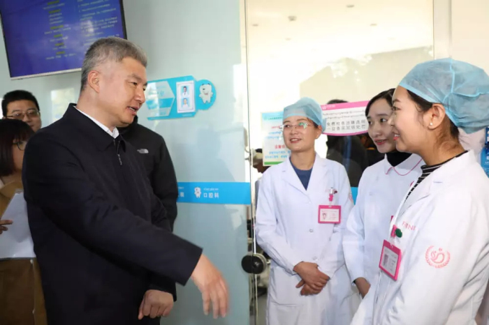 在婦產(chǎn)兒童分院口腔科,莊嚴書記見到了今年剛從內(nèi)地畢業(yè)回藏工作的大學生強巴卓嘎。強巴卓嘎告訴莊嚴書記,自己在內(nèi)地讀了5年口腔專業(yè),在阜康工作很開心,收入也不錯,現(xiàn)在有越來越多的同學愿意到民營企業(yè)工作。莊嚴書記勉勵強巴卓嘎認真學習臨床技術(shù),要不斷學習深造,提高自己專業(yè)技能,無論在公立醫(yī)院還是民營醫(yī)院工作,都是在為百姓的健康服務。