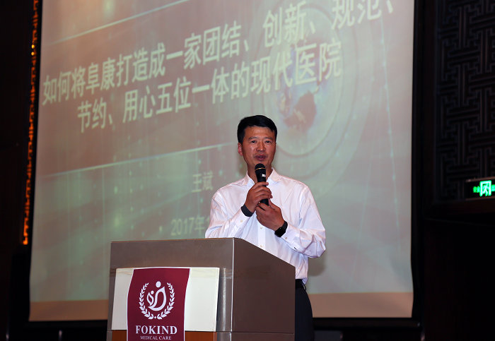 "現(xiàn)在整個中國都已融入世界發(fā)展的快車道,中國價值已被越來越多的國家認可。習(xí)近平主席提出的四個全面、五位一體、人類命運共同體也得到越來越多人的擁戴。而我們個別員工還停留在有誰罩著我,跟著誰混保平安的落后思想!現(xiàn)在我們唯有團結(jié)一致、勇于創(chuàng)新、規(guī)范管理、厲行節(jié)約及用心服務(wù)的思想才能在激烈的醫(yī)藥行業(yè)闖出阜康的一片天地?,F(xiàn)在企業(yè)準備上市,大家必須嚴格按照上市企業(yè)的要求做到自律,規(guī)范服務(wù)接受社會大眾的監(jiān)督!因為大家那怕不好的一言一行都會影響阜康的上市工作!從阜康過去發(fā)現(xiàn)的問題來看,這些問題的出現(xiàn),主要是我王斌的問題,我以前只要求大家要做什么沒告訴大家怎么做才符合阜康的核心價值觀,缺少必要的崗前培訓(xùn)。以后要加強德育和治理能力的培訓(xùn),只有這樣才能形成院領(lǐng)導(dǎo)服務(wù)科主任,科主任服務(wù)科員,行政后勤服務(wù)醫(yī)技護臨床一線,一線員工服務(wù)患者的思想,主動提高服務(wù)意識和水平徹底告別生、硬、冷的服務(wù)態(tài)度!讓阜康再次成為西藏醫(yī)藥行業(yè)的標桿?!蓖醣笳f。