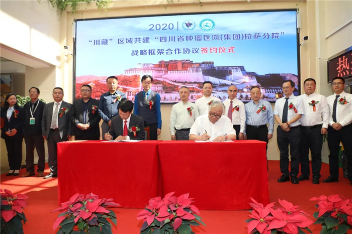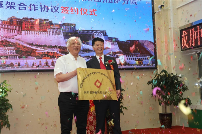 四川省腫瘤醫(yī)院黨委書記郎錦義,西藏阜康醫(yī)療股份有限公司黨委書記、董事長王斌代表雙方共同簽署《川藏區(qū)域共建四川省腫瘤醫(yī)院(集團(tuán))拉薩分院戰(zhàn)略框架合作協(xié)議》,隨后郎錦義書記向王斌董事長進(jìn)行了授牌。