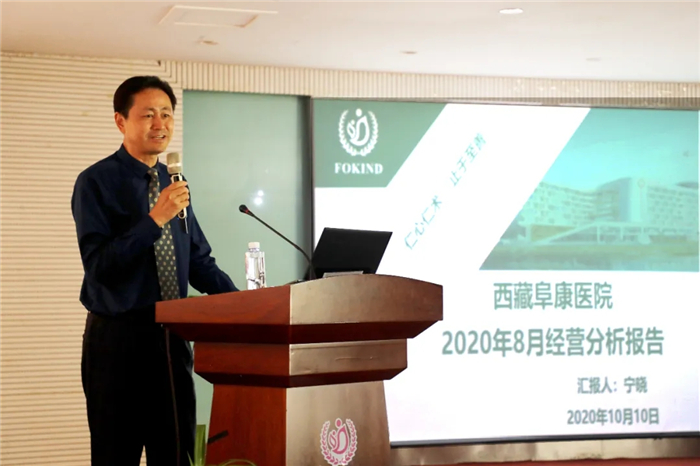 在醫(yī)院運營方面,寧曉總院長匯報了2020年8月經營分析報告,他以詳細的圖文數據,分析了醫(yī)院的經營情況,并提出了下一步工作重點。