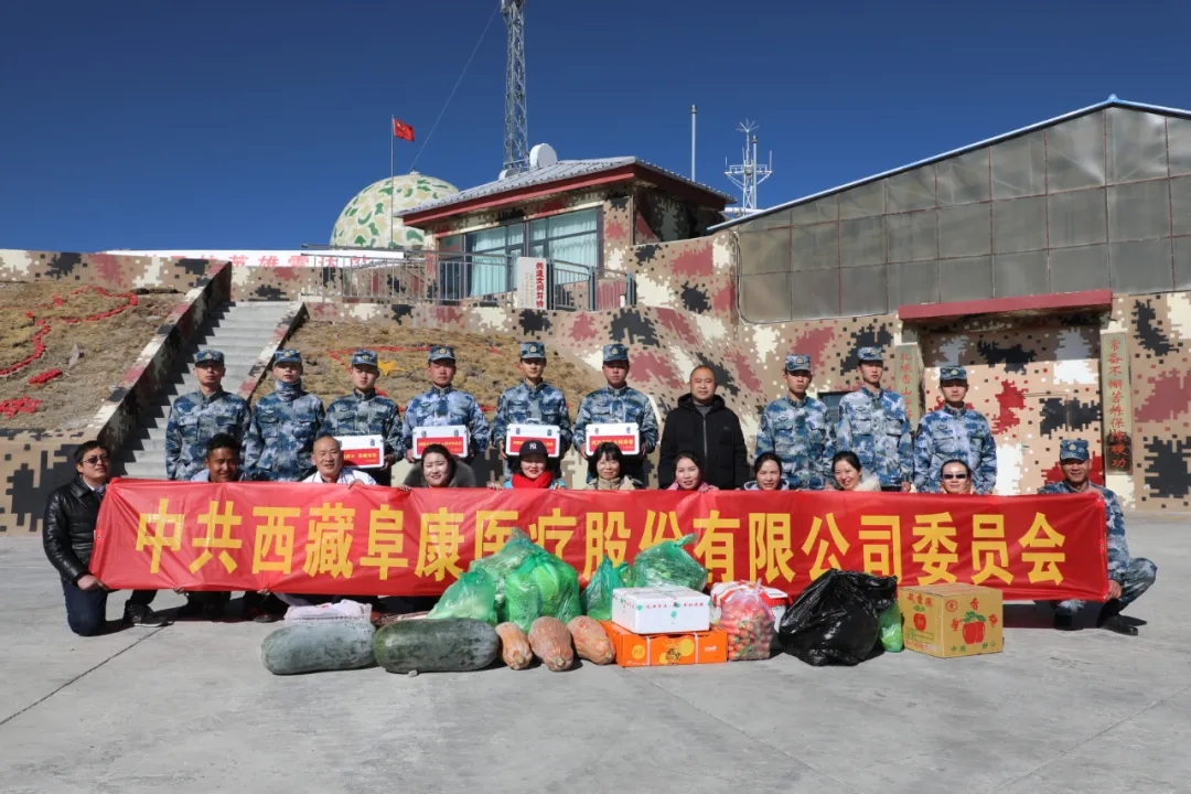 2021春節(jié)、藏歷新年剛過,元宵佳節(jié)即將到來,2月24日,受西藏阜康醫(yī)療股份有限公司黨委書記、董事長王斌委托,公司黨委副書記劉連福帶領(lǐng)十名黨員來到海拔5374米的甘巴拉雷達站陣地,親切慰問節(jié)日期間駐守在這里的廣大官兵。雷達站領(lǐng)導舒靈鋒、賈亞東熱情接待了阜康醫(yī)療黨委一行,并向大家介紹了廣大駐守官兵先進事跡。