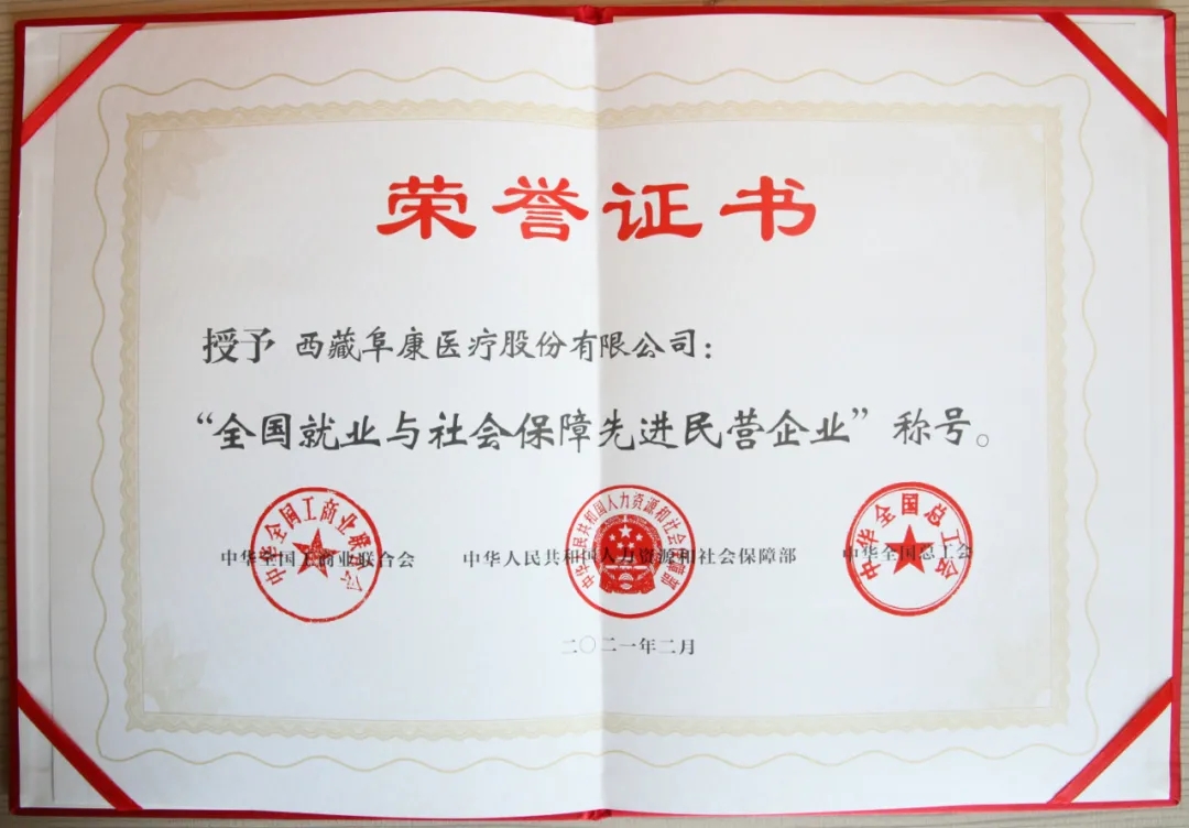 "就業(yè)是最大的民生,收入是民生之源”,西藏阜康醫(yī)療股份有限公司將以本次榮獲"全國就業(yè)與社會(huì)保障先進(jìn)民營企業(yè)”為新的起點(diǎn),繼續(xù)加大就業(yè)與社會(huì)保障工作力度,在企業(yè)發(fā)展的同時(shí)進(jìn)一步增加吸納就業(yè)人數(shù),引進(jìn)高級專業(yè)技術(shù)人才,加大現(xiàn)有人員技能培訓(xùn)力度,努力提高職工收入水平,為全面推進(jìn)社會(huì)主義現(xiàn)代化建設(shè)和鄉(xiāng)村振興事業(yè)做出應(yīng)有的貢獻(xiàn)。