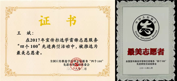 西藏阜康雪域天使志愿者服務(wù)隊(duì)隊(duì)長王斌,在2017年學(xué)雷鋒志愿服務(wù)"四個(gè)100”先進(jìn)典型活動中,被推選為最美志愿者。