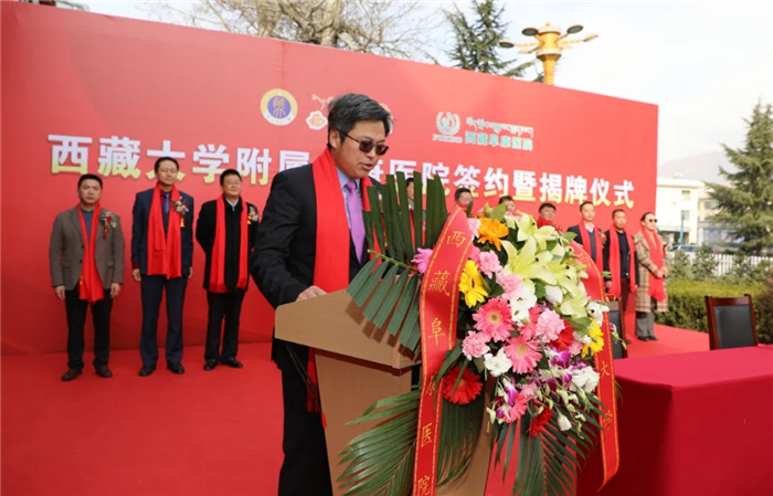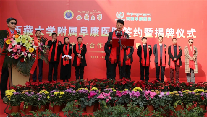 王斌董事長在致辭中說,在黨委、政府的關(guān)懷之下,在主管部門的指導(dǎo)之下,在全區(qū)人民和社會各界的支持之下,西藏阜康醫(yī)院經(jīng)過十六年的發(fā)展,已經(jīng)成為一家現(xiàn)代化綜合性三級民營醫(yī)院。此次西藏大學(xué)與西藏阜康醫(yī)院的"聯(lián)姻”,開啟了地方高校與民營醫(yī)院深度合作的先河,西藏阜康醫(yī)院成為西藏大學(xué)的附屬醫(yī)院,體現(xiàn)了西藏大學(xué)對阜康醫(yī)院的信任,同時也為阜康醫(yī)院的發(fā)展注入了"強(qiáng)心劑”,雙方的合作一定能實現(xiàn)優(yōu)勢互補(bǔ)、資源共享、互利雙贏,補(bǔ)齊短板的預(yù)期目的。