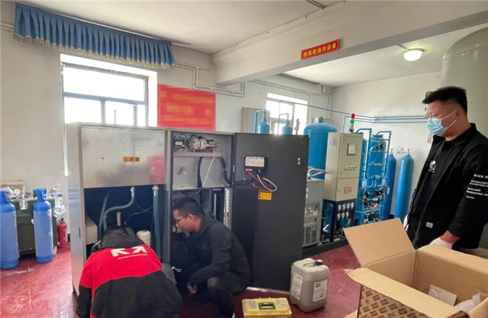 此次慰問,同行的還有西藏圣海諾科技有限公司總經(jīng)理朱永強(qiáng)及其公司員工一行,為其保養(yǎng)制氧機(jī)設(shè)備。
