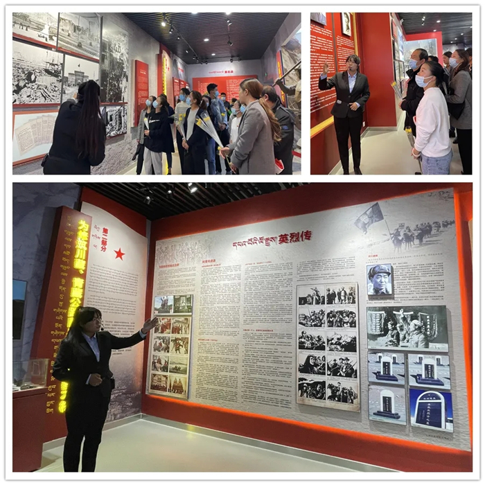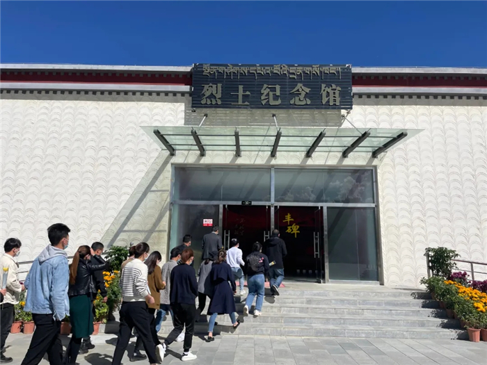 在講解員的帶領(lǐng)下,大家參觀了烈士紀(jì)念館,館內(nèi)主要展陳了見(jiàn)證西藏和平解放、修筑川藏青藏公路、平叛改革、中印自衛(wèi)反擊戰(zhàn)、平息拉薩騷亂及在西藏社會(huì)主義革命建設(shè)中英勇?tīng)奚母锩沂渴妨稀⒘沂窟z物等,更讓我們了解了今天幸福生活來(lái)之不易。