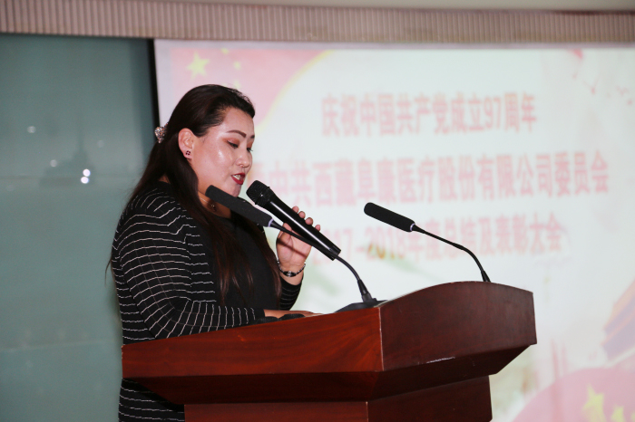 優(yōu)秀黨務(wù)工作者索珍作代表發(fā)言。她由衷感謝公司黨委的信任,表示自己會把這份信任變?yōu)楣ぷ鞯膭恿?,進(jìn)一步提高對患者的服務(wù)能力和水平,為醫(yī)院的發(fā)展貢獻(xiàn)自己的力量,不辱一個(gè)新時(shí)代共產(chǎn)黨員的光榮使命。
