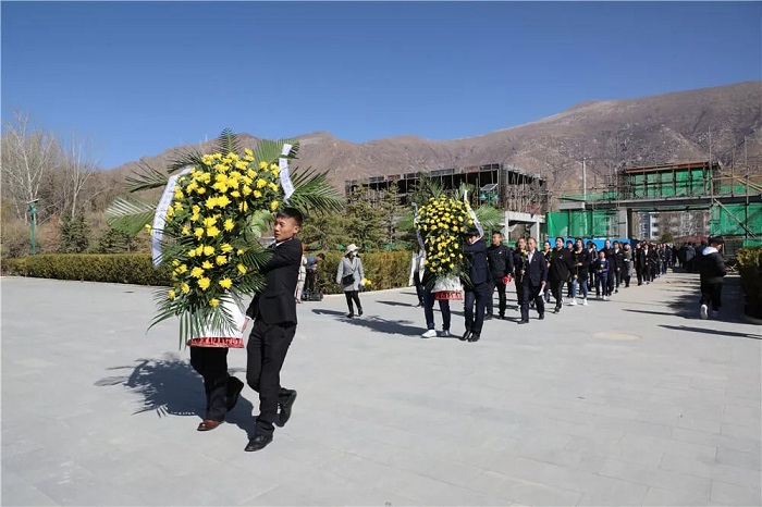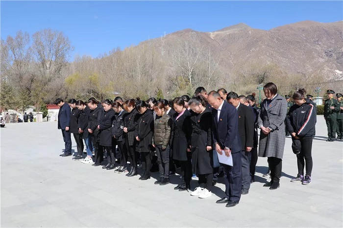 儀式結(jié)束以后,全體黨員整齊肅穆地走過紀(jì)念碑,懷著對革命先烈的崇敬之情瞻仰了烈士陵墓,同時(shí)聽取引導(dǎo)人員關(guān)于革命烈士的事跡介紹。在烈士英名墻下,大家仔細(xì)瀏覽烈士的名字;在領(lǐng)導(dǎo)干部的楷??追鄙镜哪贡?,大家深深鞠躬表達(dá)對革命先烈的崇敬與追思;面對一排排長眠的革命烈士,大家深切感受黨的事業(yè)所經(jīng)歷的艱辛與付出的巨大犧牲,深深思考作為一名新時(shí)代的中國共產(chǎn)黨員應(yīng)該如何肩負(fù)起歷史賦予的使命,在黨中央和區(qū)黨委的堅(jiān)強(qiáng)領(lǐng)導(dǎo)下,為西藏的穩(wěn)定發(fā)展、為中華民族的偉大復(fù)興貢獻(xiàn)自己的力量,堅(jiān)決做一名無愧于黨和人民、無愧于時(shí)代的合格共產(chǎn)黨員。
