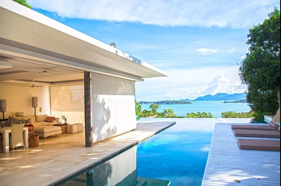 2. 無邊際泳池:無邊際泳池是通過設(shè)計(jì),讓人感覺泳池沒有邊框,帶給人無邊的視覺效果,然后搭配遠(yuǎn)處的山色,將庭院景觀無限延伸,使人心曠神怡。