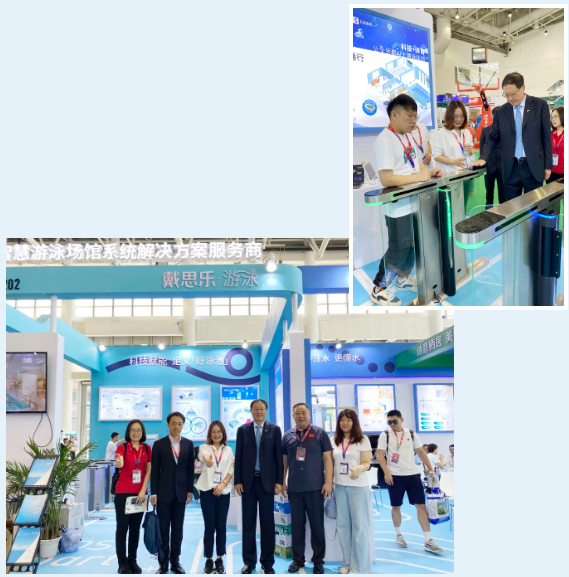 展會(huì)期間,中國體育用品業(yè)聯(lián)合會(huì)主席李燁、世界休閑體育協(xié)會(huì)輪值主席、首都體育學(xué)院教授博導(dǎo)李相如教授等領(lǐng)導(dǎo)蒞臨戴思樂展位參觀指導(dǎo),并對(duì)戴思樂在“低碳智慧游泳場館”建設(shè)方面的成果,以及健康、低碳、智慧的全域水系統(tǒng)解決方案給予了充分肯定和高度認(rèn)可。