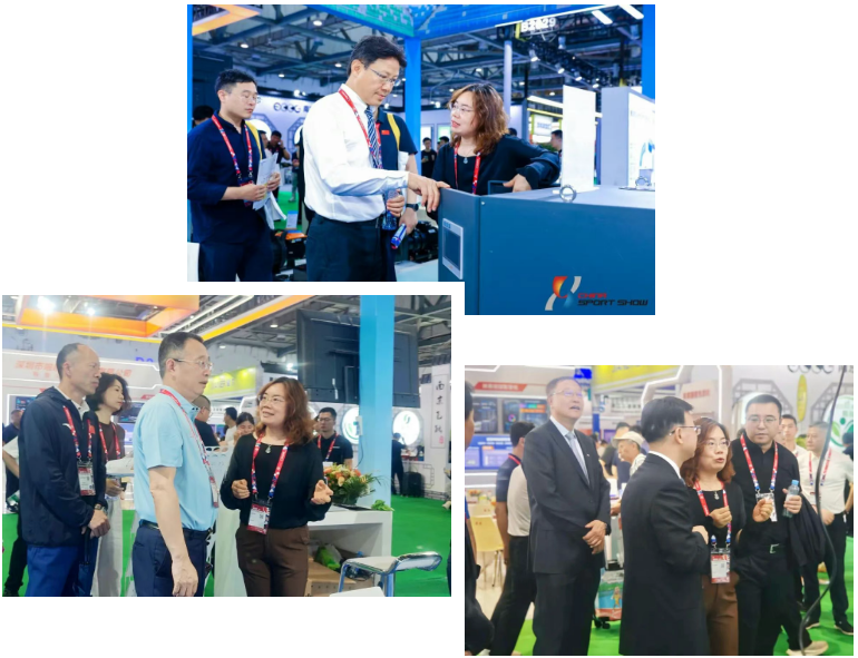 展會(huì)現(xiàn)場(chǎng),江西省人民政府、國(guó)家奧林匹克體育中心、廣東省體育局、中國(guó)體育用品業(yè)聯(lián)合會(huì)等重要領(lǐng)導(dǎo)親臨戴思樂展位參觀指導(dǎo)。他們深度調(diào)研體育行業(yè)前沿趨勢(shì),并對(duì)戴思樂低氯水處理技術(shù)與智慧場(chǎng)館解決方案給予高度評(píng)價(jià)。